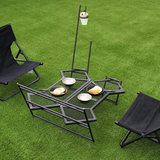 It's neither light nor compact. Still, I made a table for an exciting solo camper. It is a cockpit shape that allows you to secure a private space by consolidating necessary items around you.